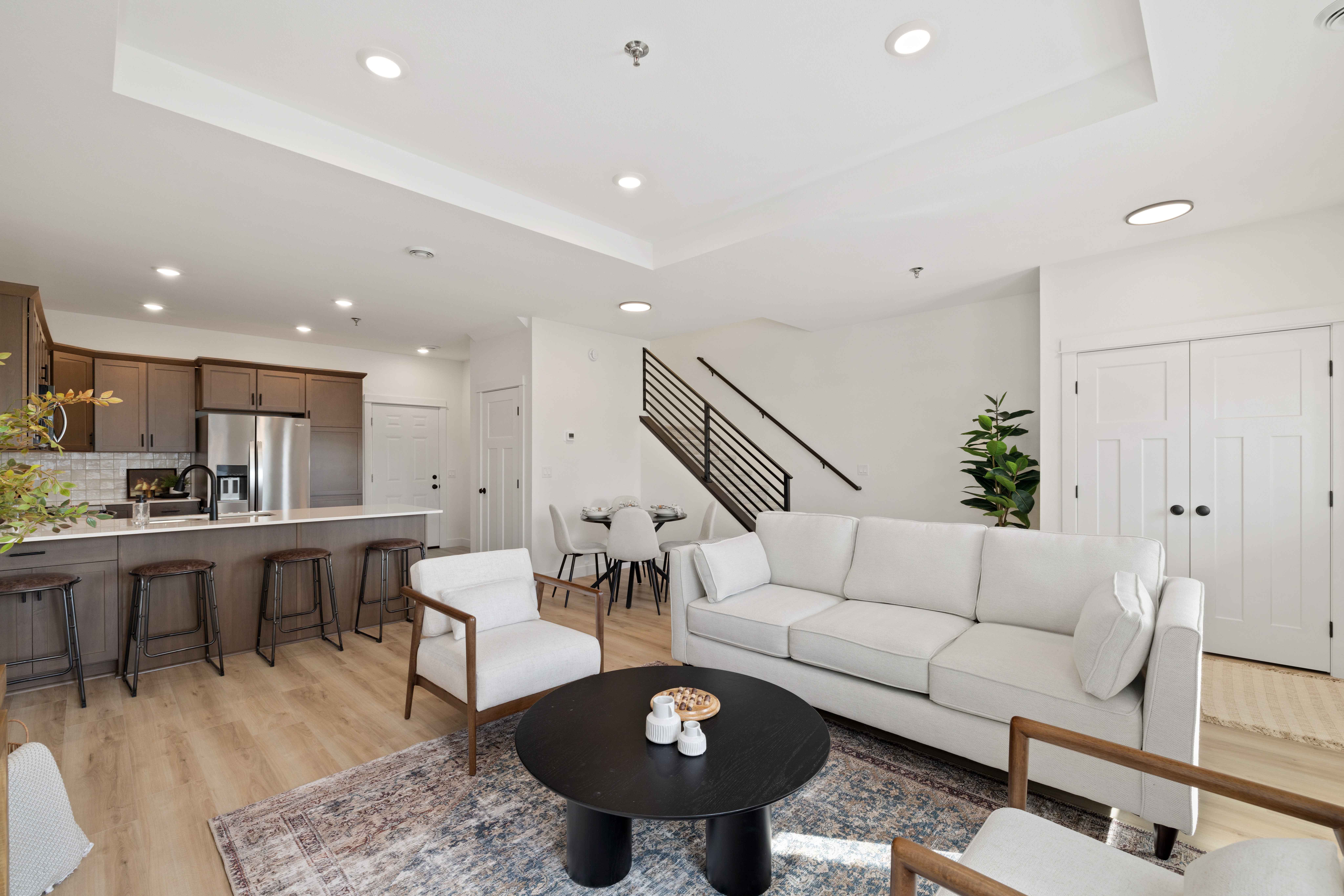 This beautifully designed new construction townhome offers modern living with premium upgrades. The main floor features an open-concept layout with a kitchen and dining area, complete with quartz countertops, custom cabinetry, and stainless steel appliances. Upstairs,you'll find 3-bedrooms, including a private primary suite with a double vanity and tile shower, a full bath, and a versatile loft space ideal for a home office or additional lounge area.