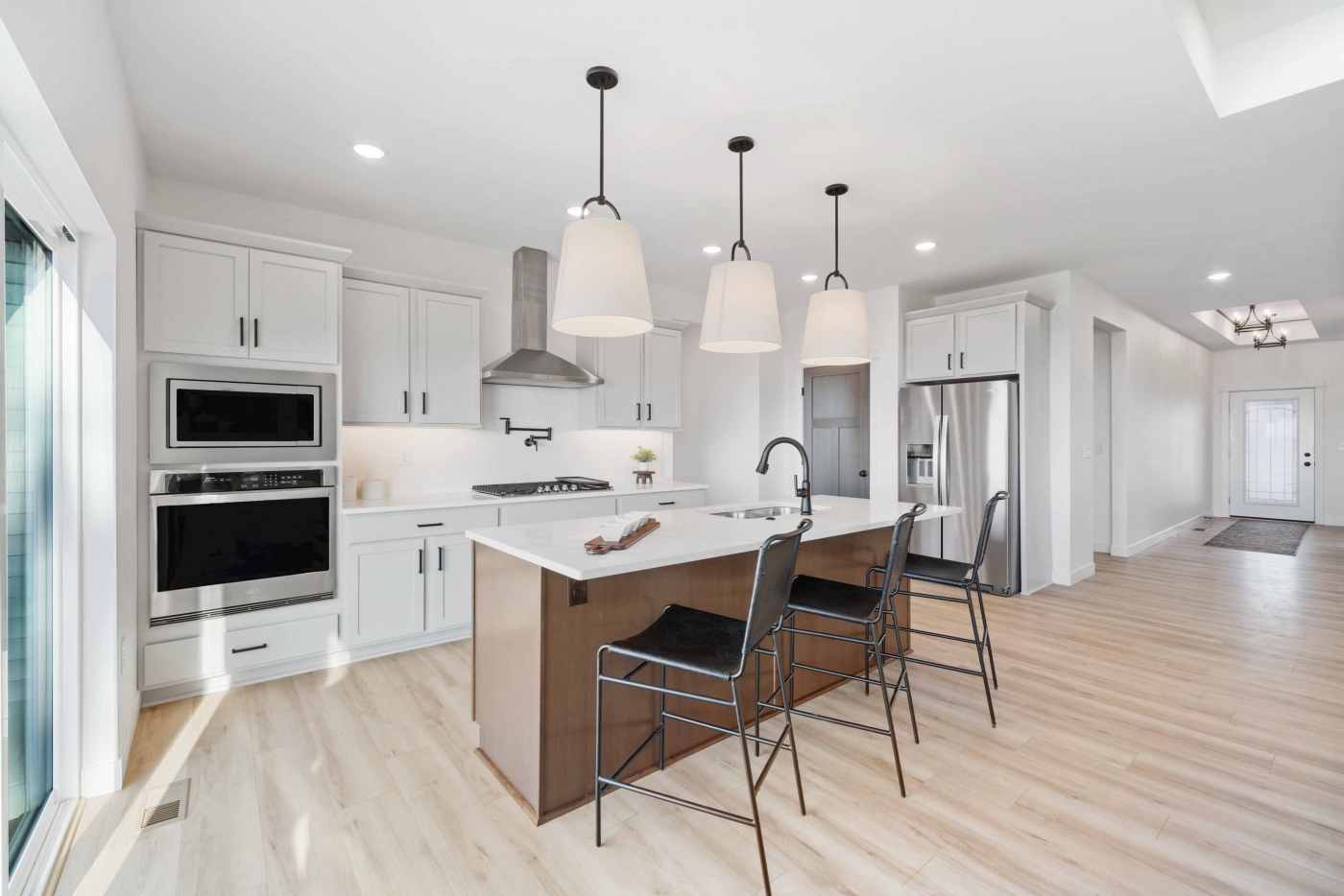 Craftsman-style home with custom finishes throughout! Enjoy a bright, open layout with a gourmet kitchen, quartz countertops, and stainless-steel appliances. The great room features a custom-beam ceiling and cozy fireplace. Main level includes a luxurious primary suite and another bedroom. The finished lower level offers 2-bedrooms, a full bath, spacious family room, and built-in bar. Finished 2-car garage. HOA covers lawn care, snow removal, and neighborhood amenities for easy living.
